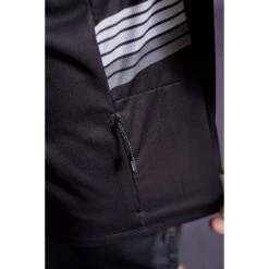 With its airy cut, the half zip and a KeyCard pocket integrated into the side panel, DentroM. All Mountain for trails and e-biking. The large print on the back and the repeating stripes on the side panel give the biodegradable shirt a retro look.
